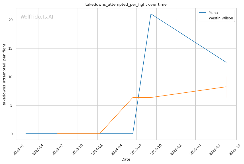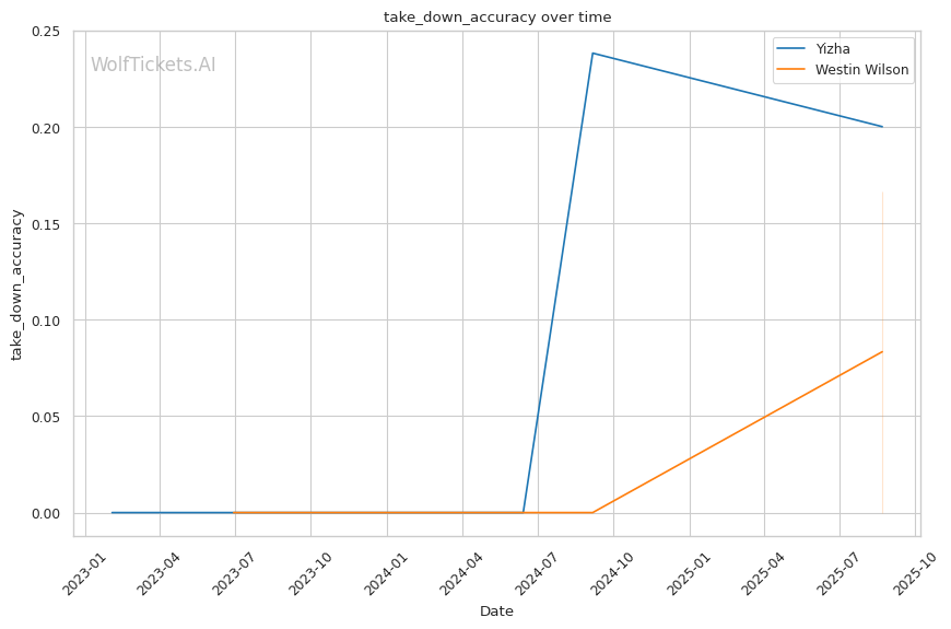 • Wilson's takedown struggles - 5% recent accuracy against Yizha's 60% defense rate creates a massive mismatch