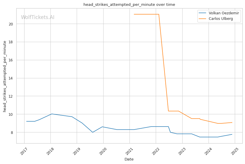 | Head Strikes Attempted per Minute | 7.759 | 9.172 | 5.508 | |