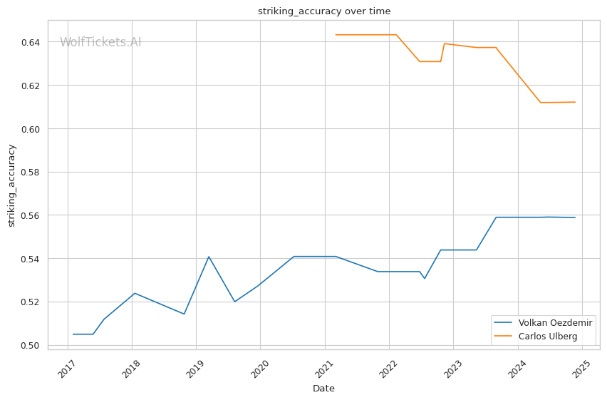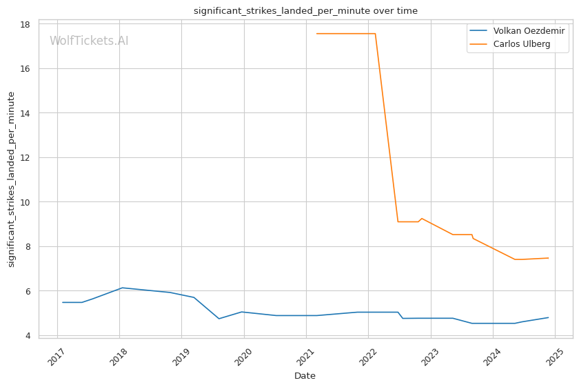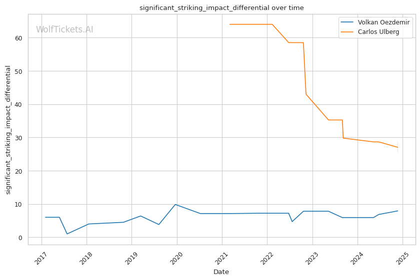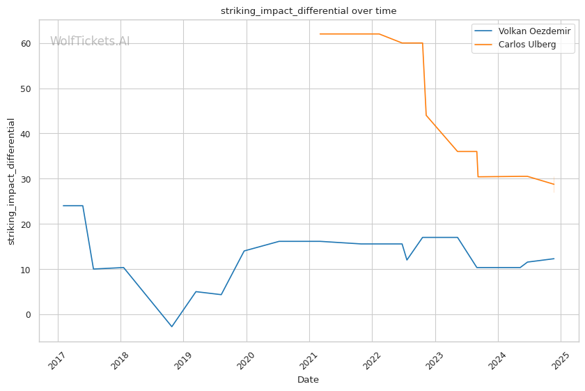 Striking Impact Differential: Ulberg has a higher striking impact differential, indicating he lands more significant strikes than he absorbs. This could be a key advantage against a heavy hitter like Oezdemir.