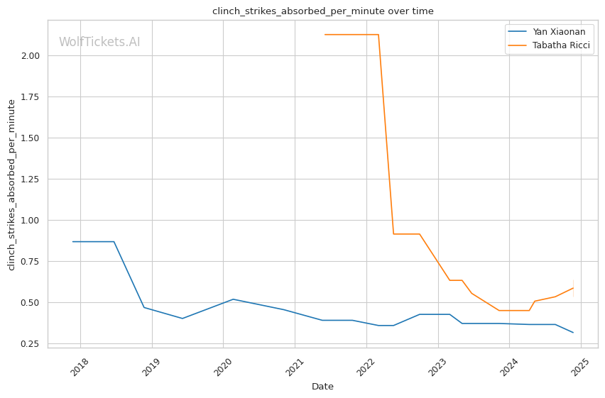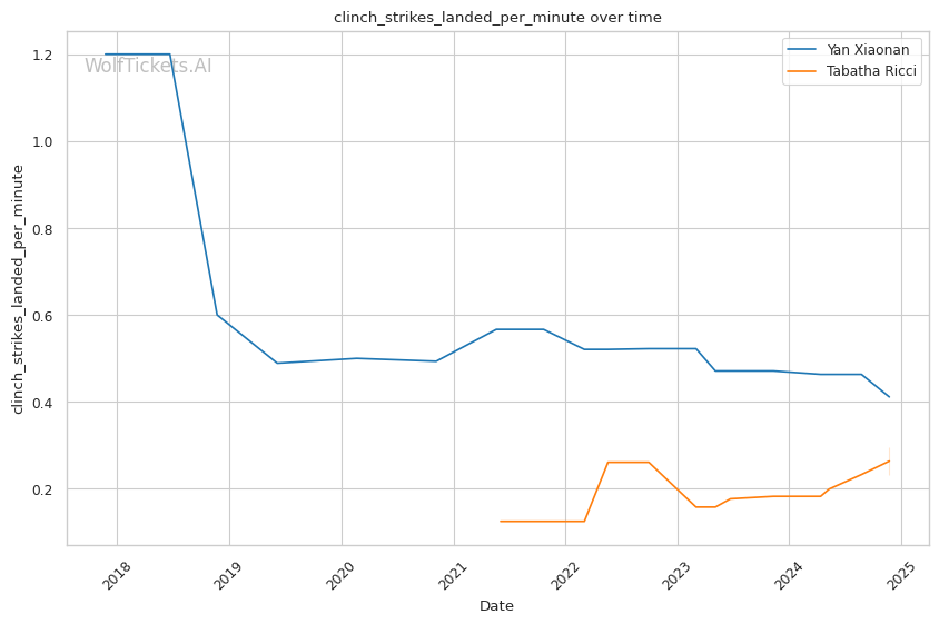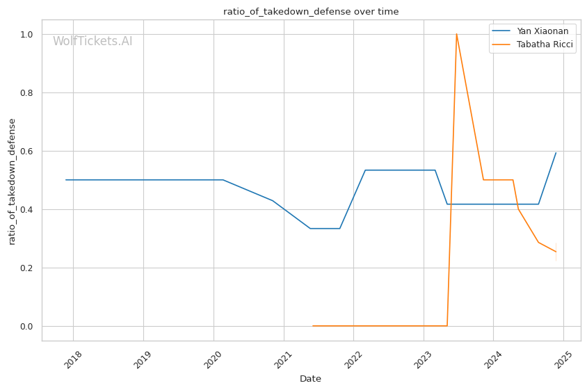 Defensively, Ricci is solid if not stellar. She absorbs 5.01 significant strikes per minute and has been outstruck in her UFC losses to Manon Fiorot and Loopy Godinez. Her 22% takedown defense is also concerning, especially against a strong clinch fighter like Xiaonan.