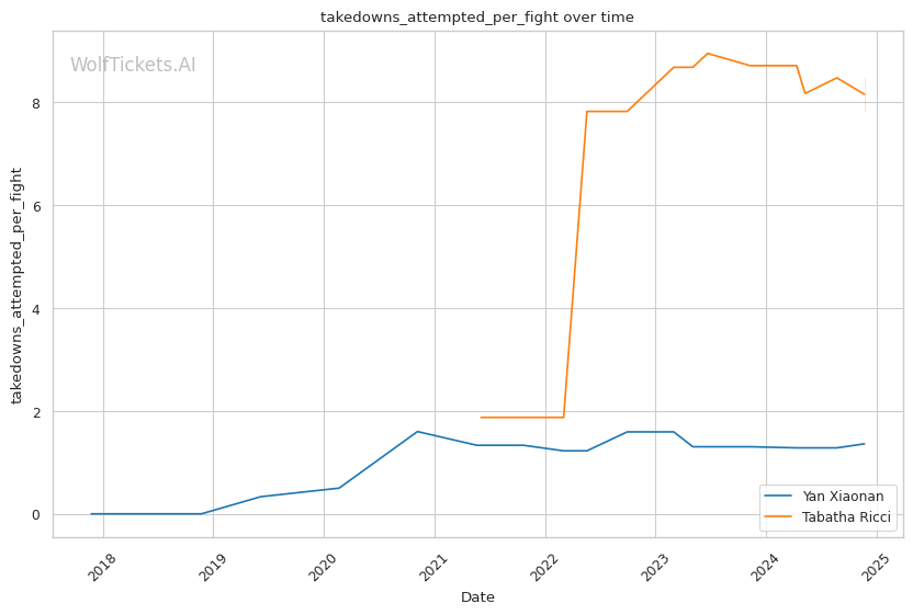 | Takedowns Attempted per Fight | 1.361 | 7.840 | 3.764 | |