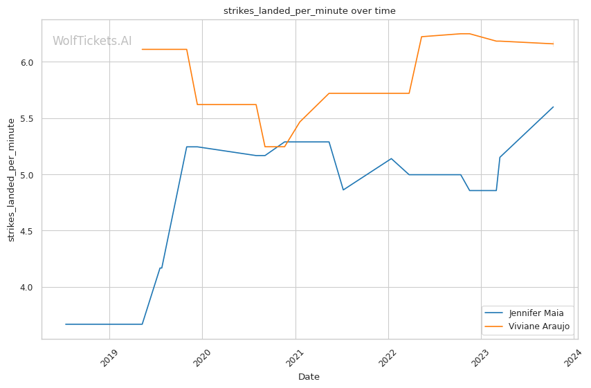 | Stat | Jennifer Maia | Viviane Araujo | Weight Class Average | |