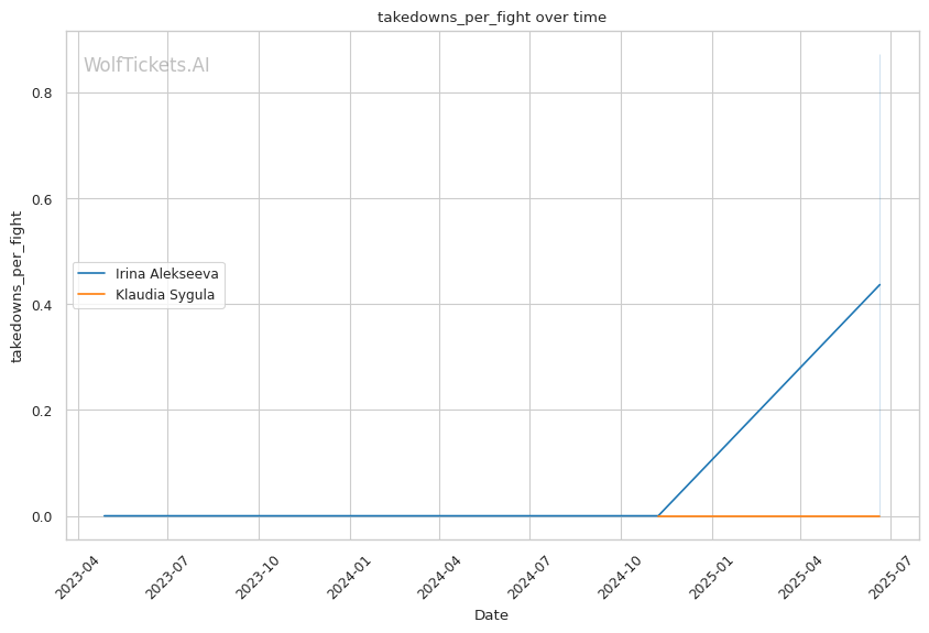 The ground game heavily favors Alekseeva. Sygula's mount defense vulnerabilities align perfectly with Alekseeva's preference for establishing dominant position and working methodically toward submissions. Alekseeva's 0.87 submissions per fight against Sygula's demonstrated inability to escape from bottom mount creates a clear path to victory.