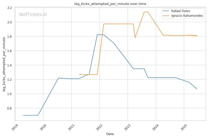 | Leg kicks Attempted per Minute | 1.065 | 1.800 | 0.780 | |