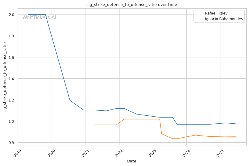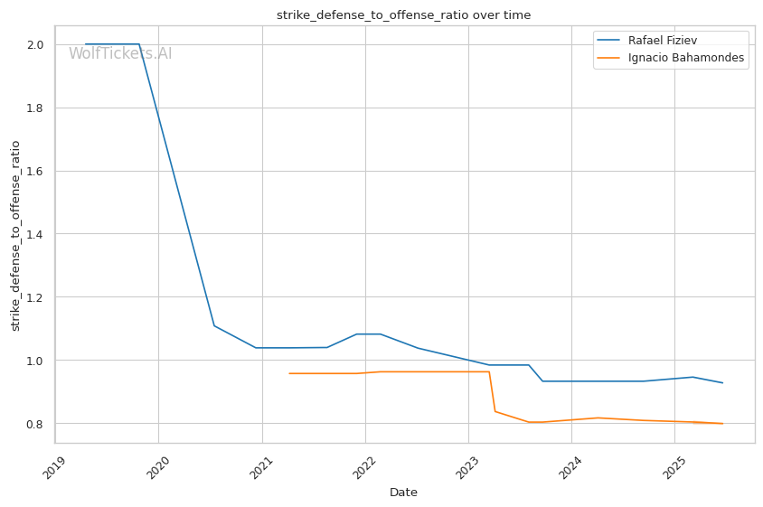 | Significant Striking Defense to Offense Ratio | 97.43% | 85.69% | 102.17% | |