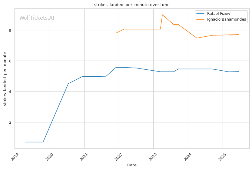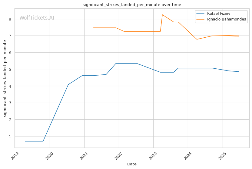 | Stat | Rafael Fiziev | Ignacio Bahamondes | Weight Class Average | |