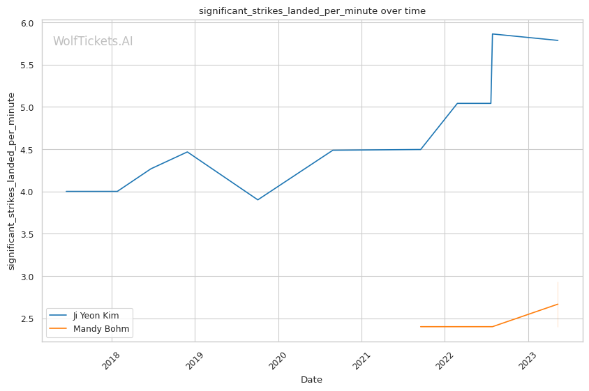 | Stat | Ji Yeon Kim | Mandy Bohm | Weight Class Average | |