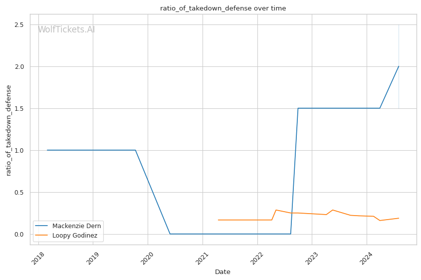 | Stat | Mackenzie Dern | Loopy Godinez | Weight Class Average | |