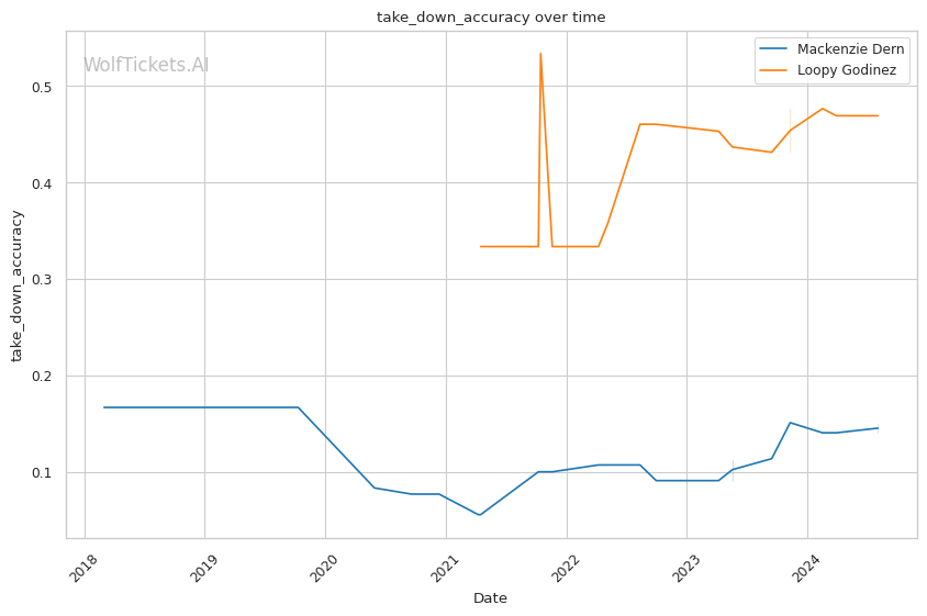 Dern's grappling remains her strongest asset. When she manages to get the fight to the ground, her submission threats are among the most dangerous in the division. However, her takedown accuracy of 15% indicates a significant hurdle in implementing her ground game consistently.
