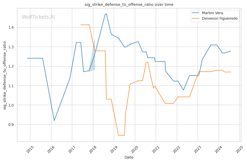 | Significant Striking Defense to Offense Ratio | 127.67% | 116.90% | 114.40% | |