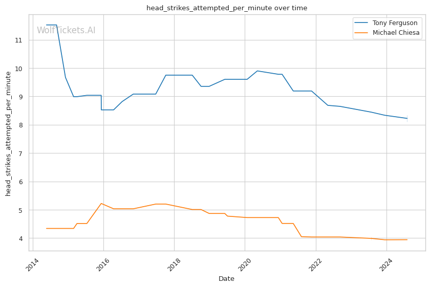 | Head Strikes Attempted per Minute | 8.114 | 3.943 | 6.701 | |