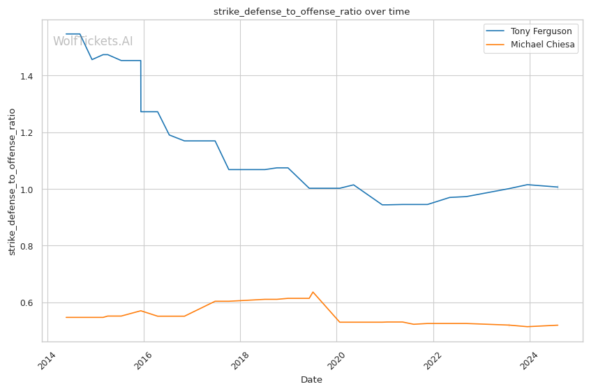 | Significant Striking Defense to Offense Ratio | 109.76% | 107.19% | 103.42% | |