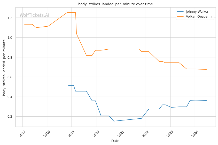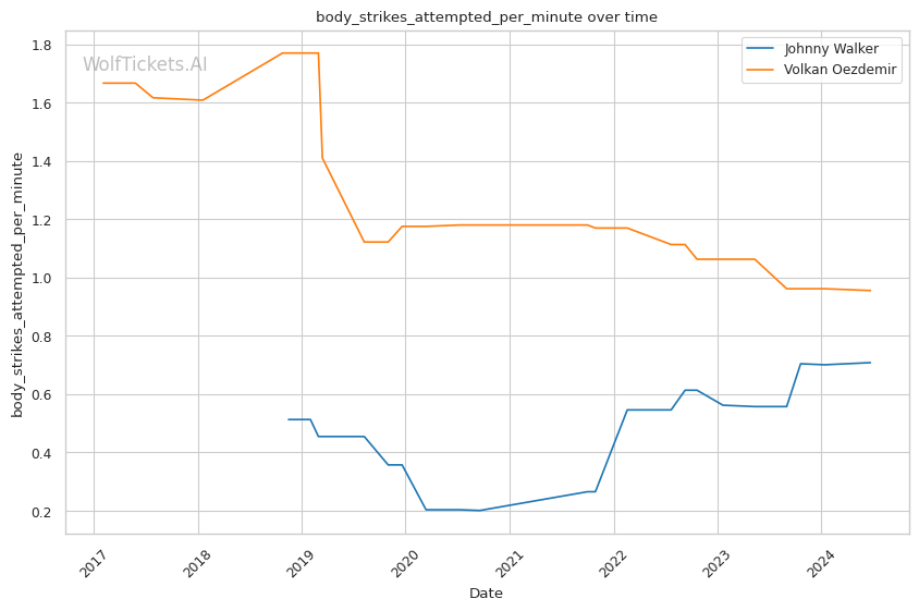 | Body Strikes Landed per Minute | 0.360 | 0.668 | 0.726 | |