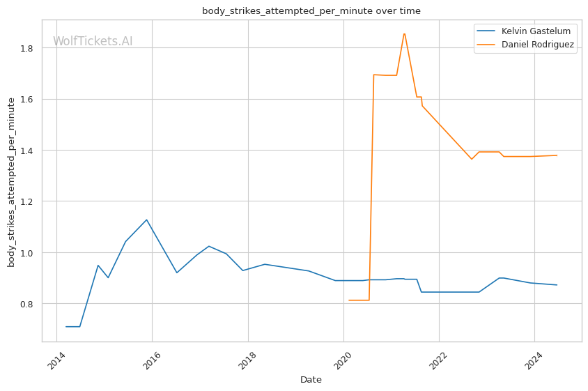 | Body Strikes Landed per Minute | 0.631 | 1.016 | 0.850 | |