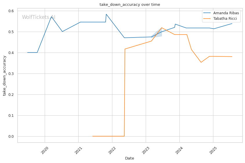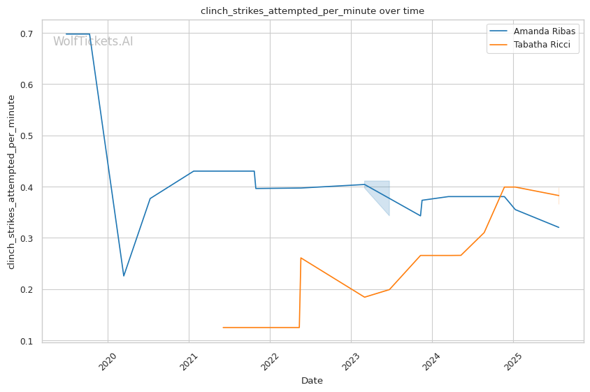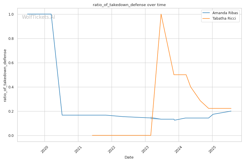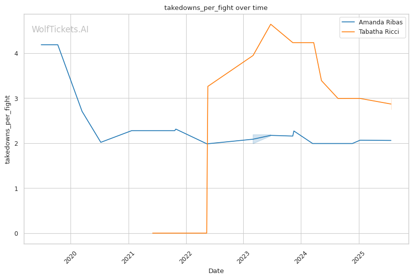 However, Ricci's volume takedown attempts (7.24 per fight) could eventually overwhelm Ribas's defensive reactions. If Ricci can secure early takedowns before Ribas establishes her throwing rhythm, she might control the pace through top position rather than clinch exchanges.
