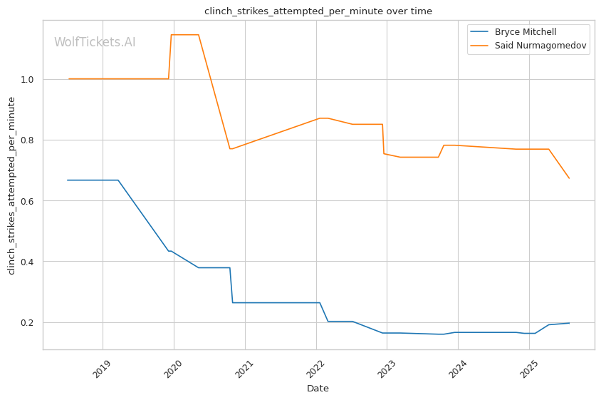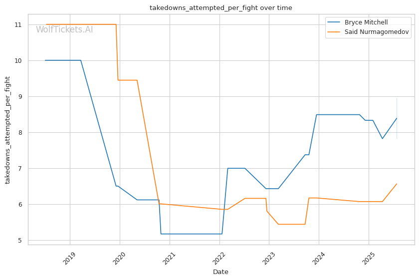 Mid-fight adjustments become crucial as Mitchell's cardio and pressure typically wear on opponents. If Said's spinning techniques haven't created significant damage, Mitchell's takedown success rate should increase as Nurmagomedov's defensive reactions slow. Said's tendency to adopt a defensive shell under sustained pressure plays directly into Mitchell's grinding style.