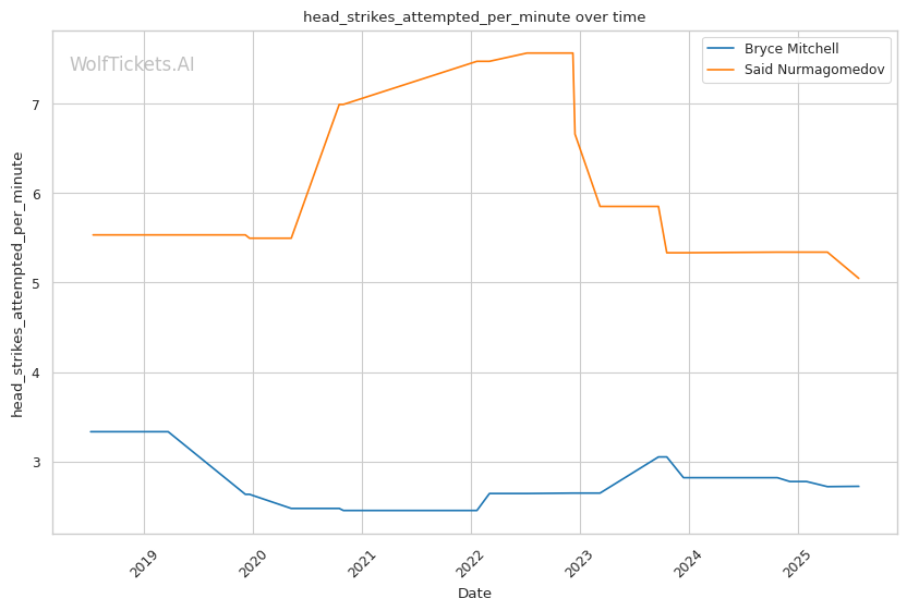 | Head Strikes Attempted per Minute | 2.727 | 5.048 | 6.156 | |