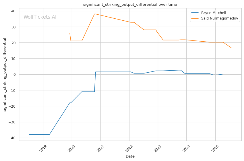 This matchup presents a fascinating clash between Mitchell's suffocating grappling pressure and Nurmagomedov's dynamic striking mobility. Mitchell's southpaw stance creates interesting angles against Said's switch-stance approach, but Nurmagomedov's lateral movement could frustrate Mitchell's takedown entries.