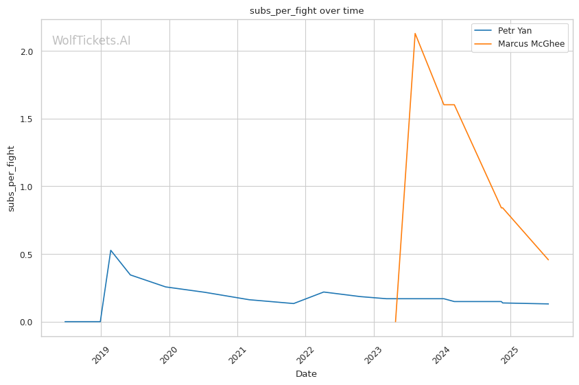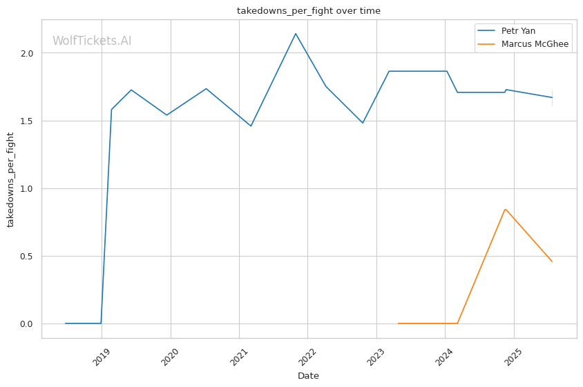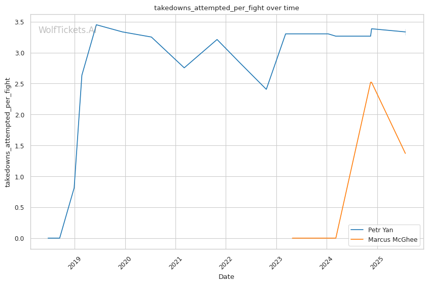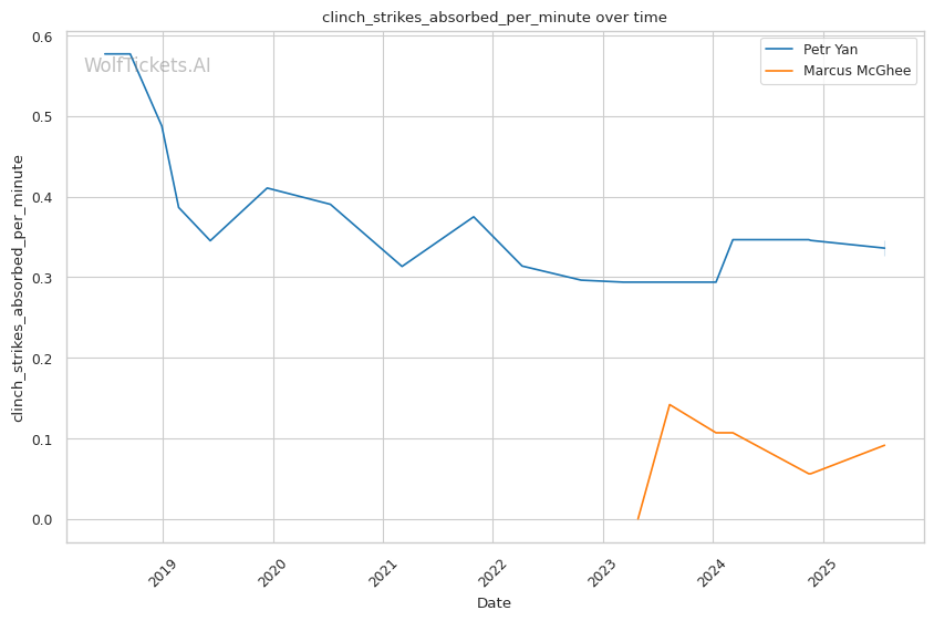 The grappling exchanges favor Yan significantly. His 1.61 takedowns per fight average, combined with McGhee's untested takedown defense against elite competition, suggests Yan can control where this fight takes place. Yan's clinch work against the cage, demonstrated effectively against Yadong, should nullify McGhee's power punching while allowing for controlling positions.