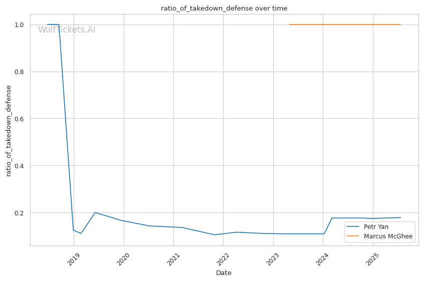 His takedown defense statistics (18.26% defense ratio) reveal another exploitable gap. Sterling repeatedly secured back control in their rematch, maintaining dominant positions for significant periods while Yan struggled to escape. When opponents can chain wrestling attempts with striking pressure, Yan's usually excellent positioning breaks down.
