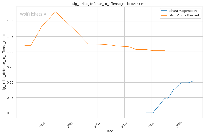 | Significant Striking Defense to Offense Ratio | 52.66% | 100.46% | 99.00% | |
