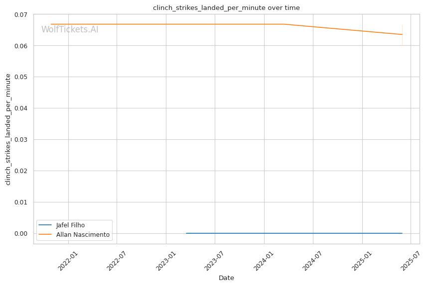 Striking Differential: Nascimento holds a significant advantage in striking impact differential (9.33 vs Filho's 7.33), suggesting more effective striking even with fewer attempts.