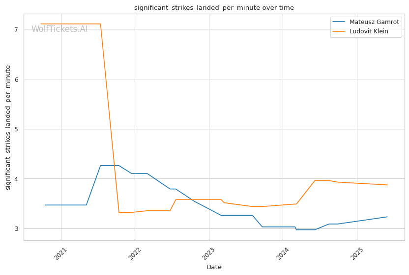 | Stat | Mateusz Gamrot | Ludovit Klein | Weight Class Average | |