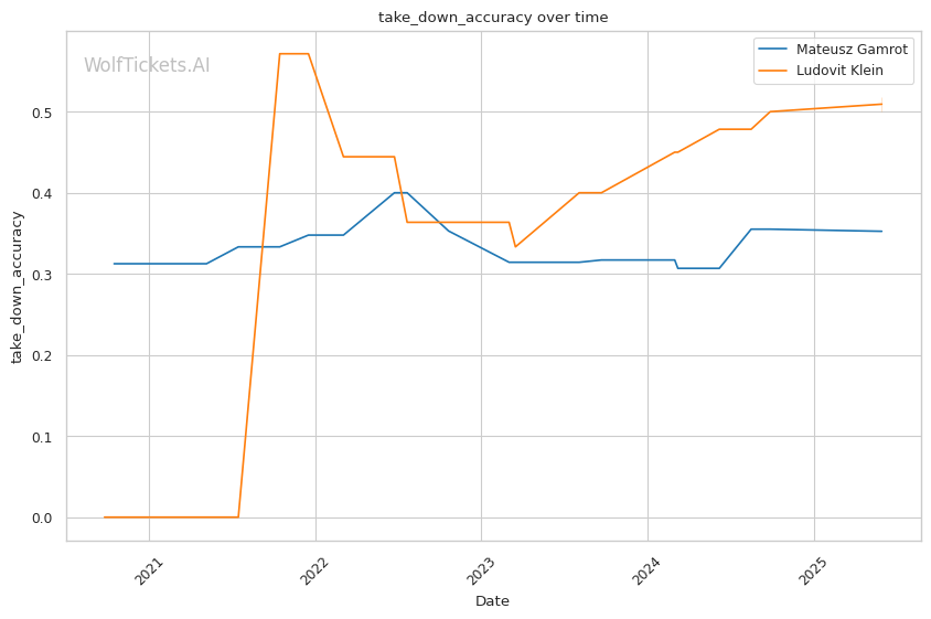 Championship rounds: Should the fight reach the later rounds, Gamrot's superior cardio and pace will likely be the deciding factor. Klein has shown cardio issues in previous fights, particularly when forced to defend takedowns repeatedly. Gamrot's ability to maintain the same technical precision in his takedown attempts in round five as he showed in round one (as demonstrated against RDA) will allow him to continue scoring points and controlling the fight.