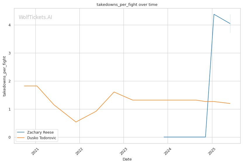 Clinch exchanges: While Todorovic excels in the clinch, his defensive vulnerability during clinch breaks plays directly into Reese's counter-striking ability. Reese can land clean counter shots as Todorovic attempts to disengage from clinch positions.