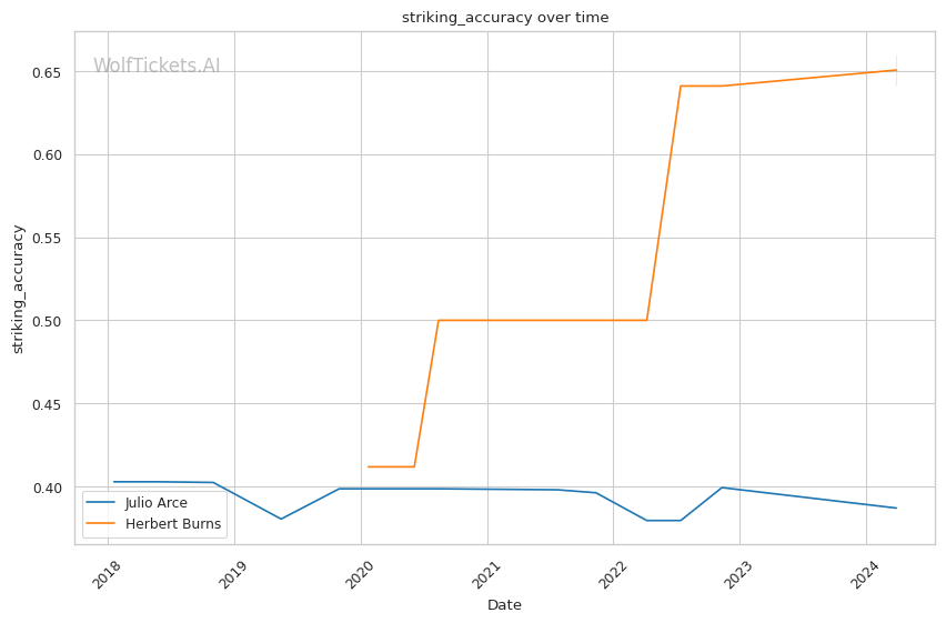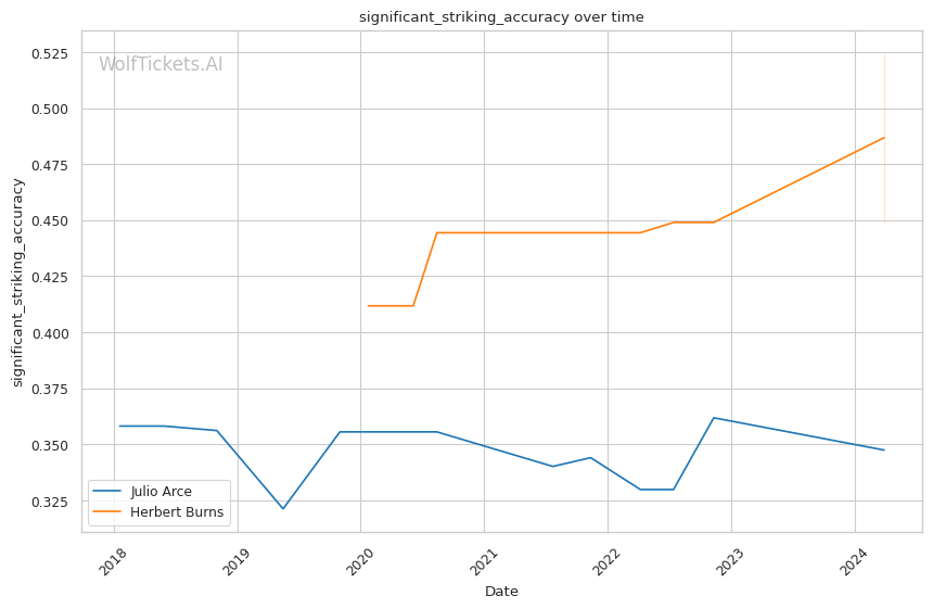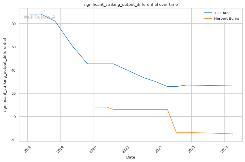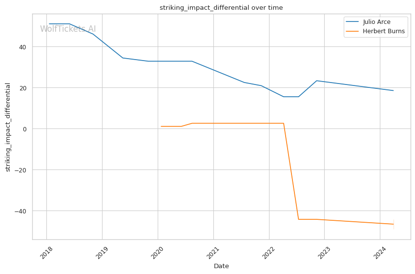 Overall, WolfTickets predicts a Julio Arce victory and the underlying data supports that pick. Arce is the much better and more technically sound striker, and if he can maintain distance and defend takedowns, he should be able to pick Burns apart on the feet.