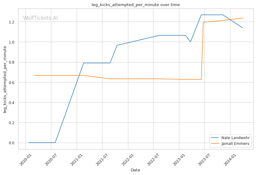 | Leg kicks Attempted per Minute | 1.140 | 1.260 | 0.678 | |