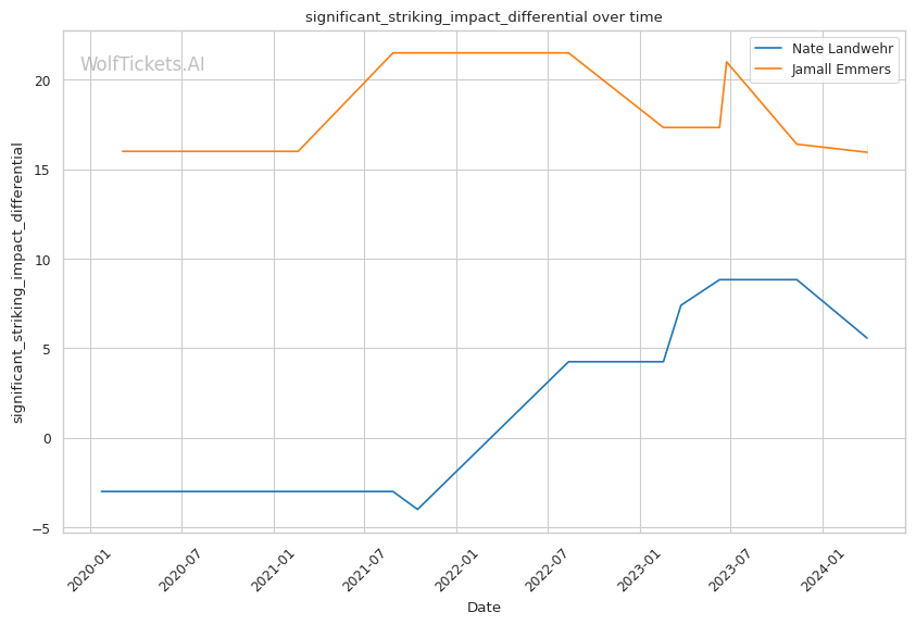 Interestingly, Landwehr's higher striking impact differential increased the score slightly despite favoring Emmers overall. This may reflect Landwehr's knockout power being his clearest path to victory.