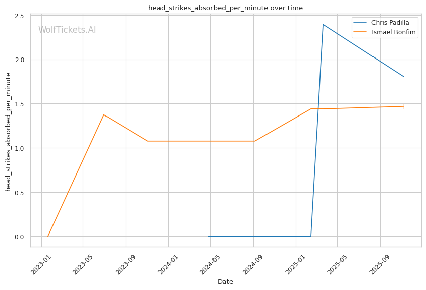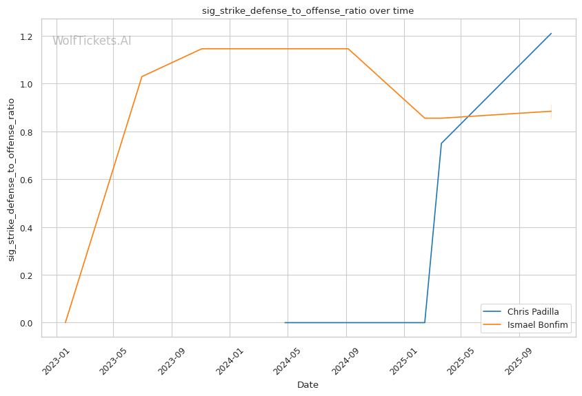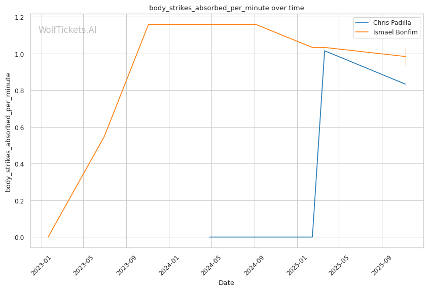 1. Defensive Gaps Against Volume Strikers (Herbert Fight, Round 3): When Herbert pulled away in the final frame, he hurt Padilla badly with punch combinations, wobbling him and opening a deep gash on his left eyebrow. Padilla's recent striking defense percentage of 36.67% shows he's absorbing far too much damage. Against a volume striker like Bonfim who lands 5.77 significant strikes per minute, Padilla will be forced to eat shots while trying to close distance. His strike defense-to-offense ratio of 0.55 in recent fights means he's taking nearly two shots for every one he lands.