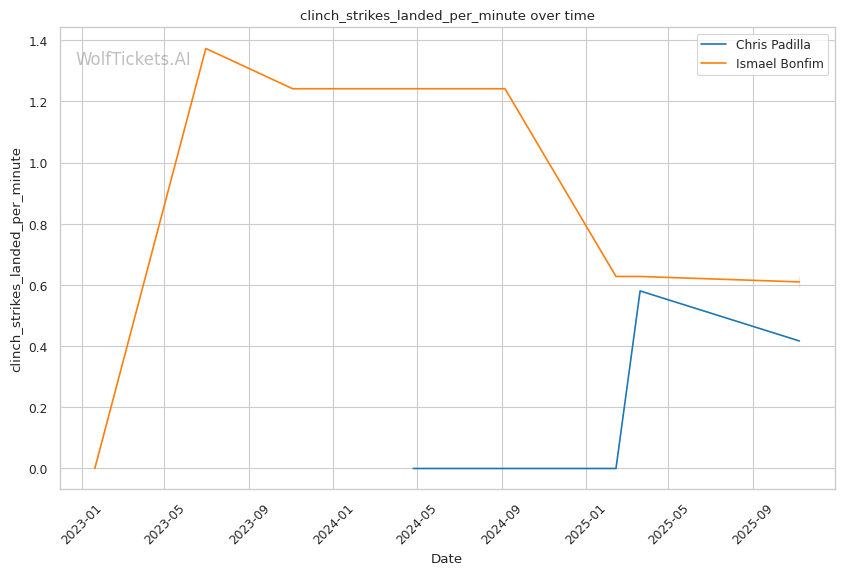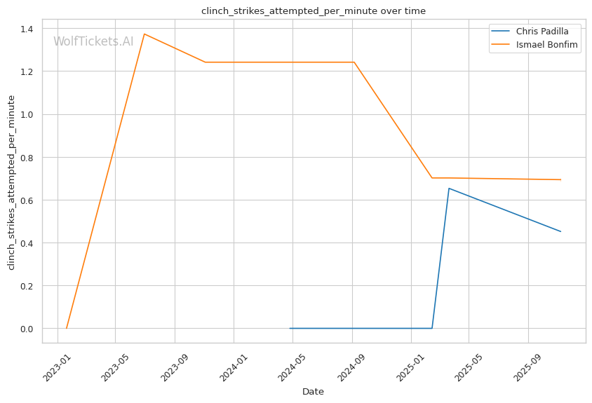 But here's the problem: Padilla's takedown accuracy sits at just 30% despite attempting 5.2 per fight. Against Herbert, he couldn't complete a single meaningful takedown despite persistent attempts. His striking output has also declined recently—landing just 4.54 strikes per minute in his last few fights compared to his 6.08 career average. The Herbert fight exposed a fighter who struggles to impose his will when opponents maintain distance and refuse to engage recklessly.