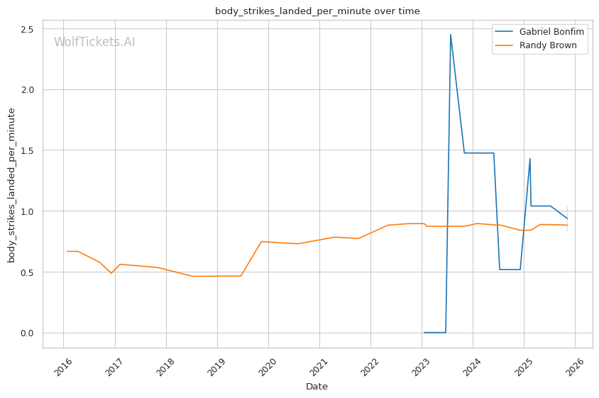 Cardio Dynamics: If Bonfim can't finish early, his cardio collapse plays directly into Brown's technical striking. Brown's 5.32 strikes landed per minute and superior conditioning allow him to maintain output and technical execution in later rounds, exactly when Bonfim's defense deteriorates. Brown's backstep technique requires less energy than Bonfim's explosive grappling, creating a cardio advantage that compounds over time.