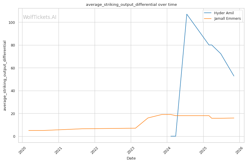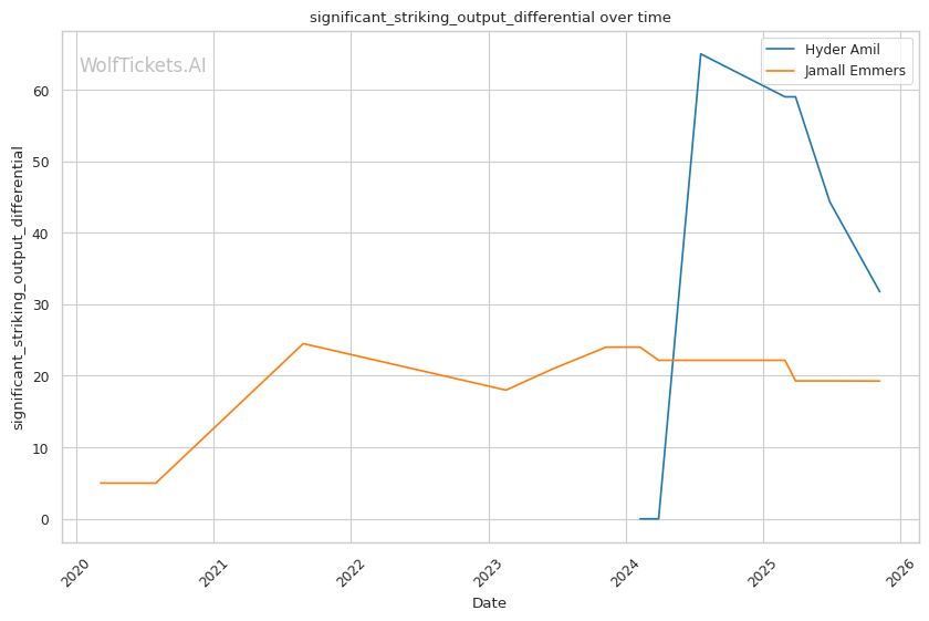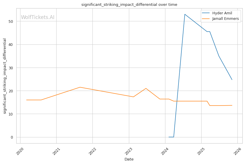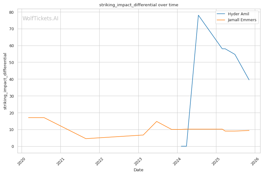 Recent Significant Striking Impact Differential increased the score by 2.0—Amil's +38.59 compared to Emmers' +15.70 shows Amil lands far more damage relative to what he absorbs, reflecting his pressure system's effectiveness