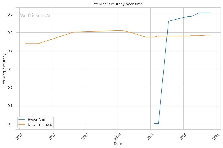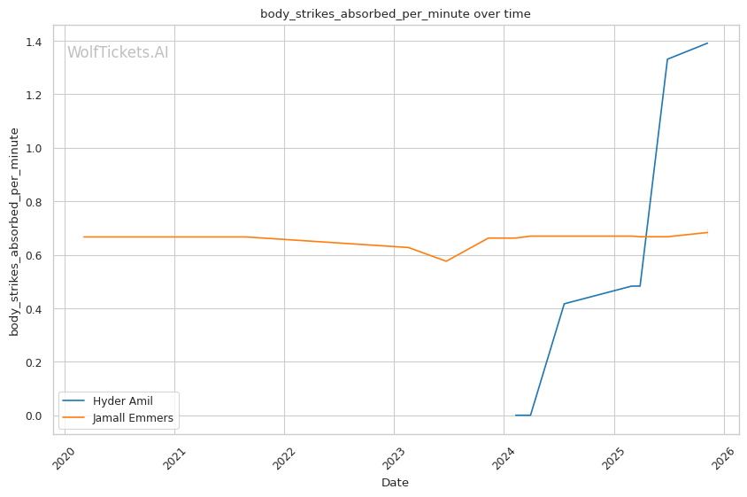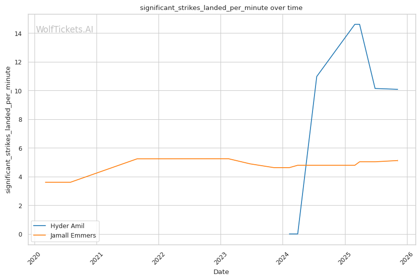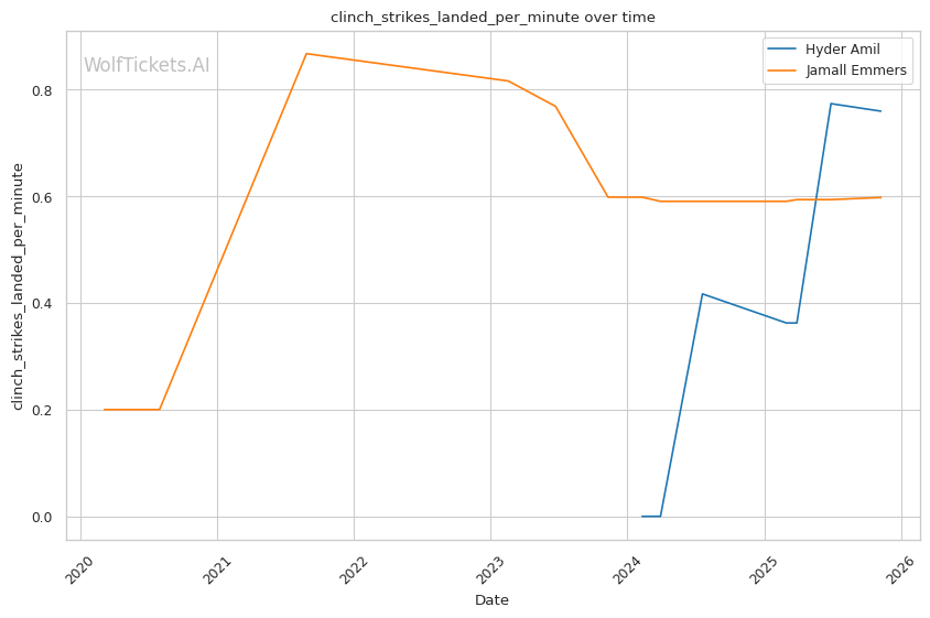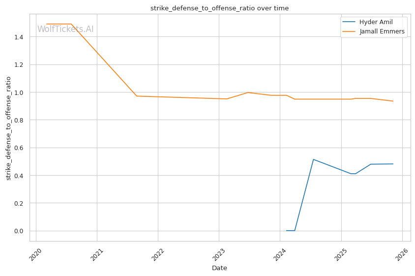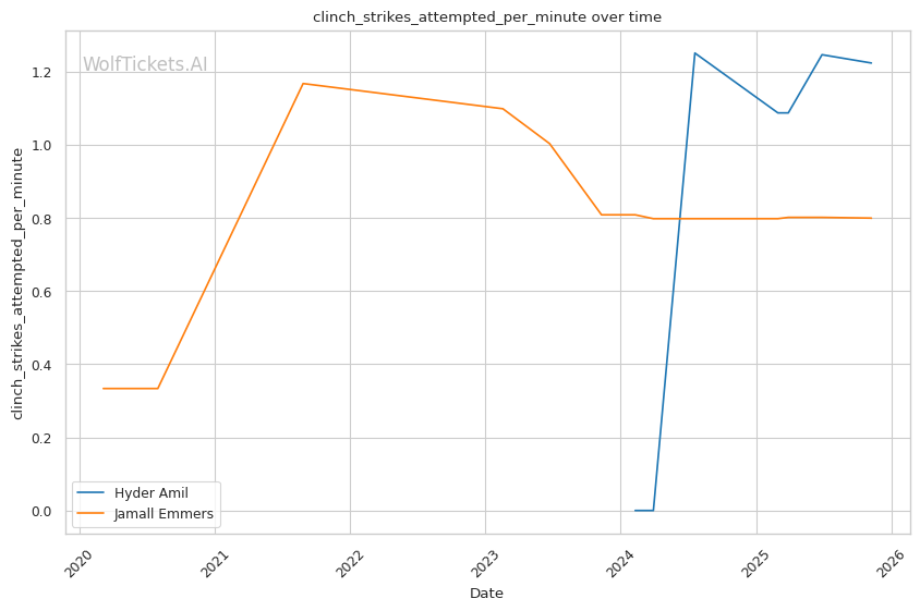 Technical Precision vs Volume Pressure: Emmers' 65.40% recent significant striking defense and shoulder roll technique provide defensive tools, but Amil's 10.08 significant strikes per minute create cumulative damage that may overwhelm technical defense