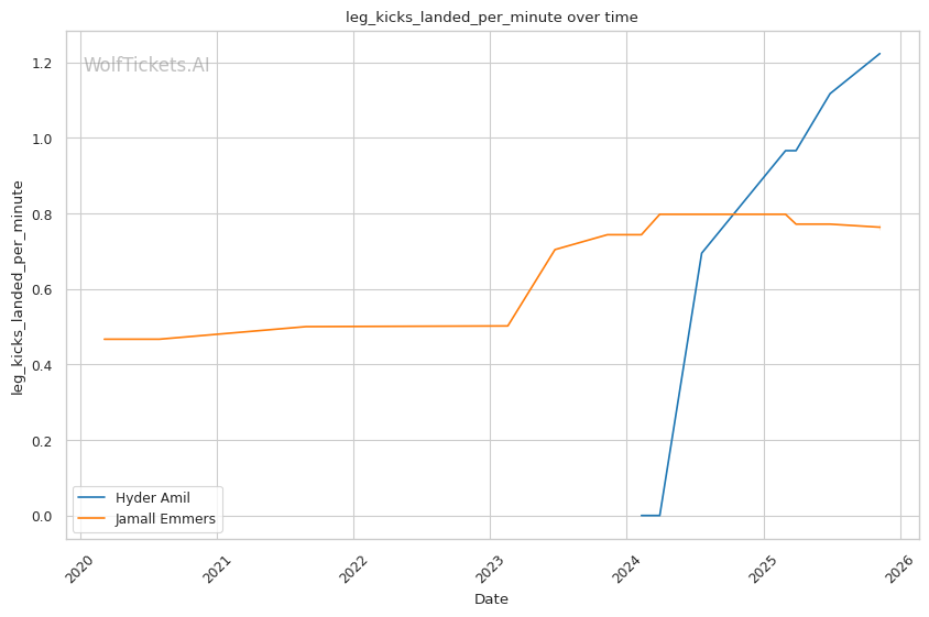 Amil's relentless pressure system, wrestling threat, and superior striking impact create a nightmare matchup for Emmers' counter-striking style and 27.27% takedown defense. While Emmers' four-inch reach advantage and technical precision provide a path to victory—particularly exploiting Amil's centerline defense vulnerability that Delgado exposed—the stylistic dynamics heavily favor Amil's approach. Emmers thrives when given space to establish his jab and time counters, but Amil's constant forward movement eliminates this entirely, forcing immediate engagement that neutralizes Emmers' primary weapons. The Sanchai kick catch directly targets Emmers' low kick game, and any successful takedown puts Emmers in positions his poor scrambling ability cannot escape. At 35 coming off a year layoff, Emmers' cardio against Amil's high-volume pressure remains questionable beyond Round 1. WolfTicketsAI predicts Hyder Amil finishes Jamall Emmers inside the distance, likely via ground-and-pound after securing takedowns off caught kicks or overwhelming Emmers' defensive shell with cumulative striking volume.