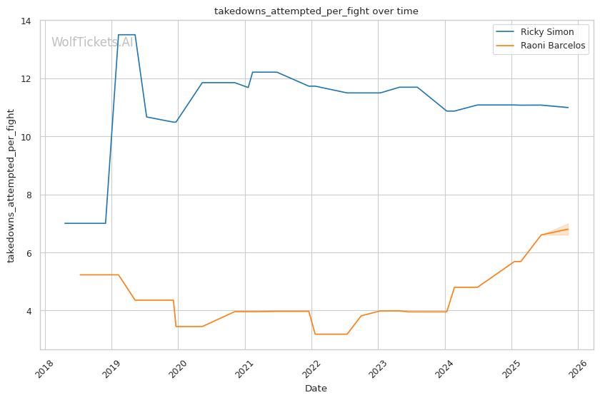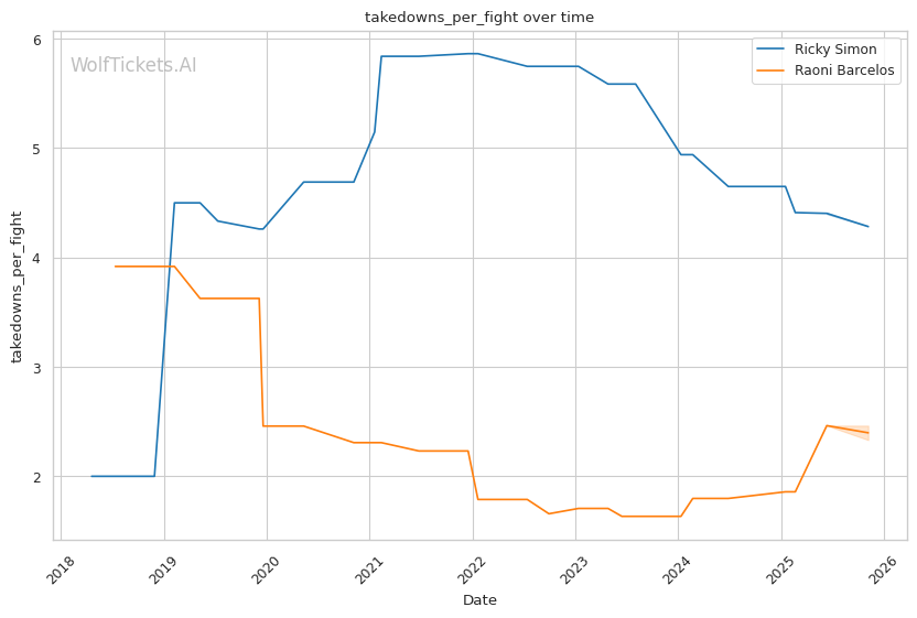 This fight presents a fascinating clash of wrestling-based pressure fighters with contrasting technical approaches. Simon's compact boxing and level changes meet Barcelos's intelligent pressure and superior cardio in a matchup that will likely be decided by who can impose their wrestling game.