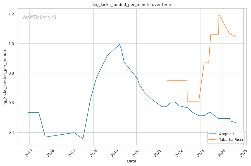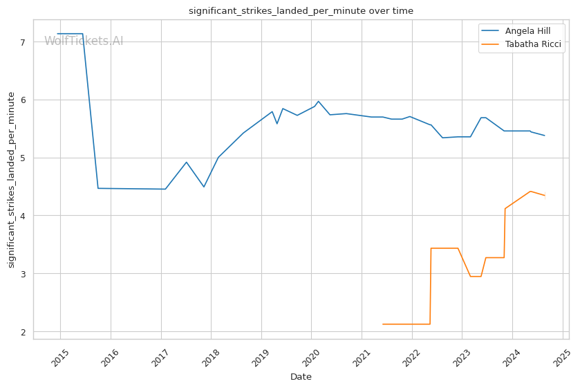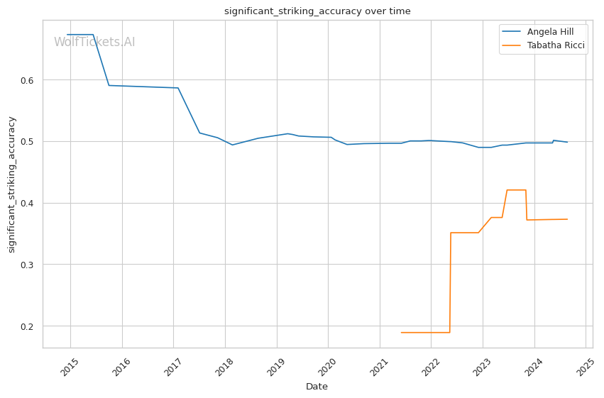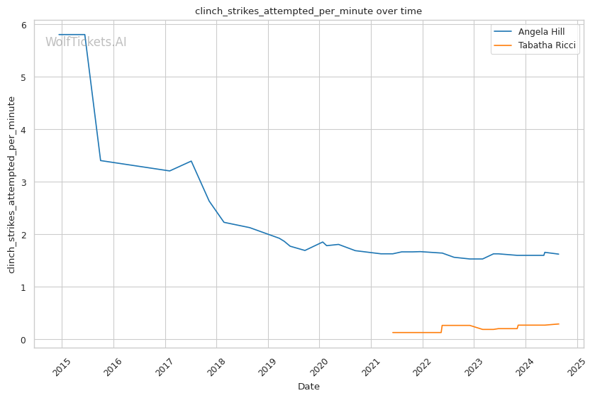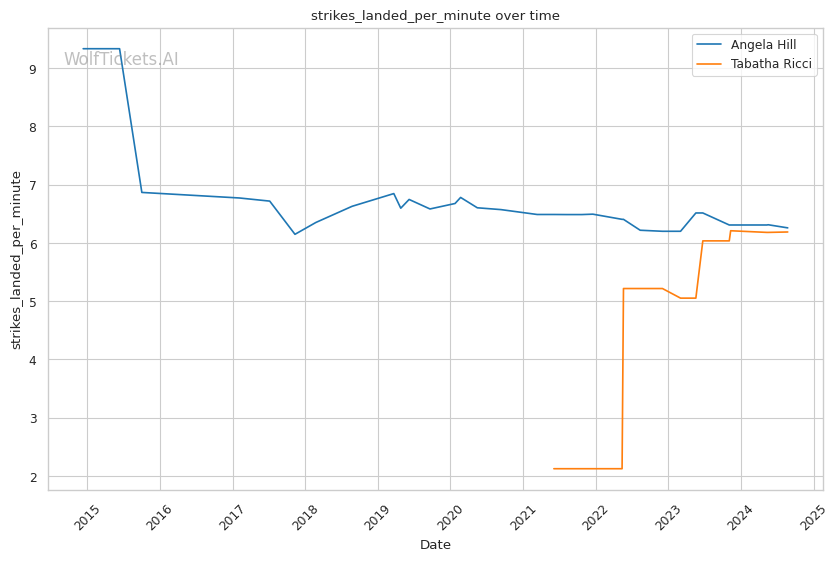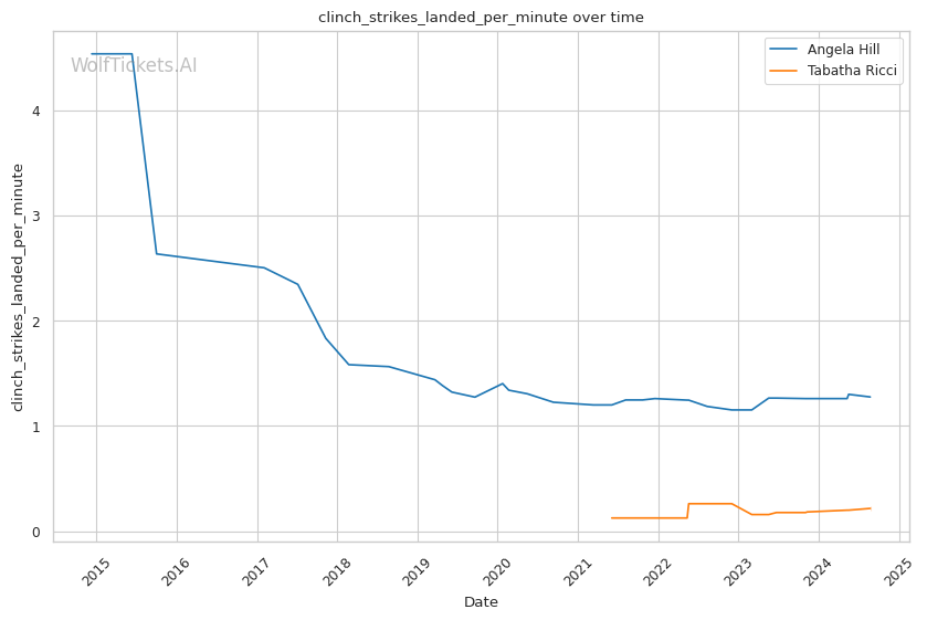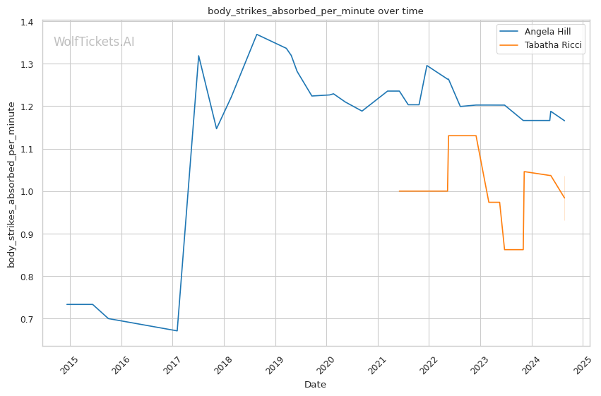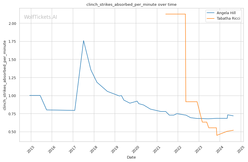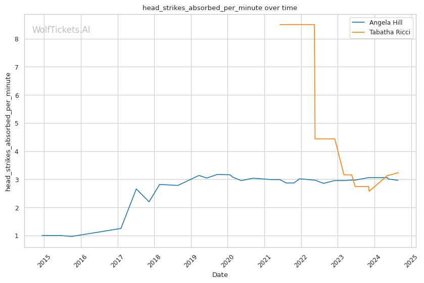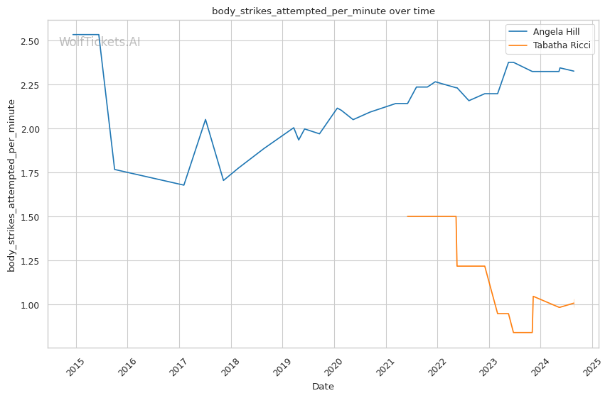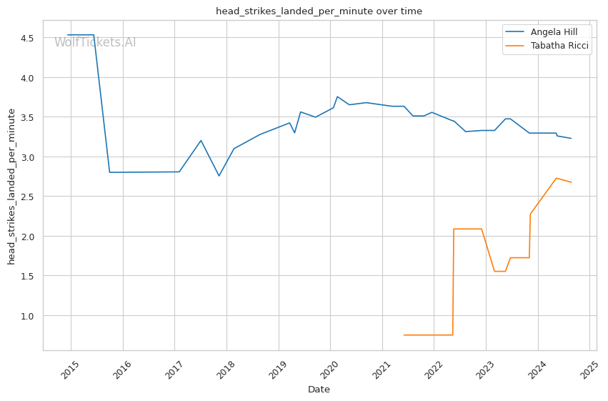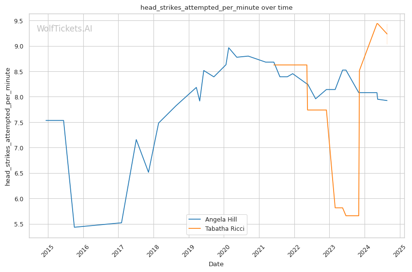 While primarily known for her grappling, Ricci has shown improvement in her striking in recent fights, making her a more multi-dimensional threat. However, her striking defense has been a point of concern, as she has absorbed a significant number of head strikes per minute (3.3128 in her recent fights).