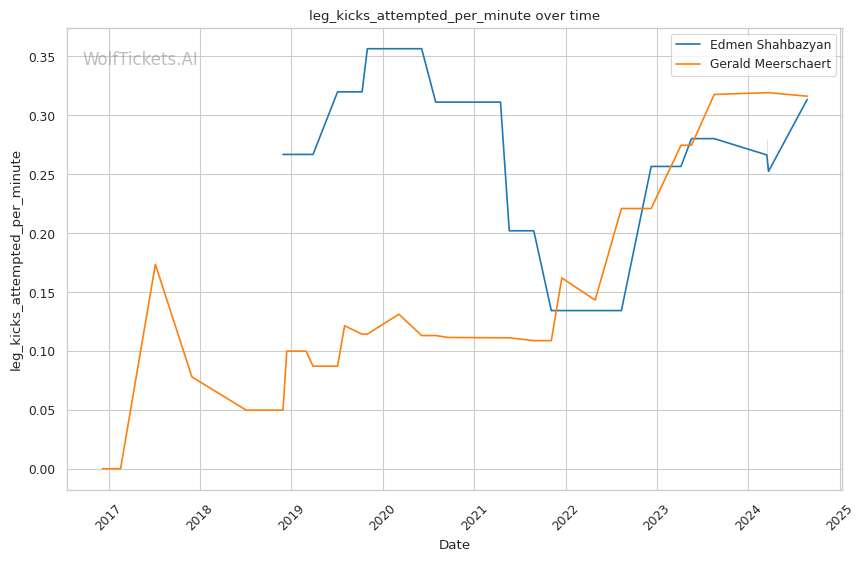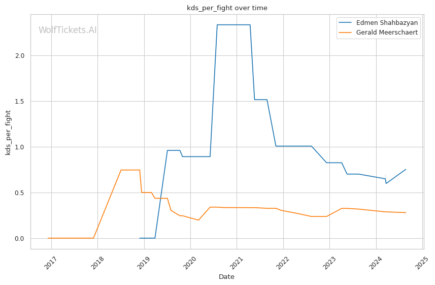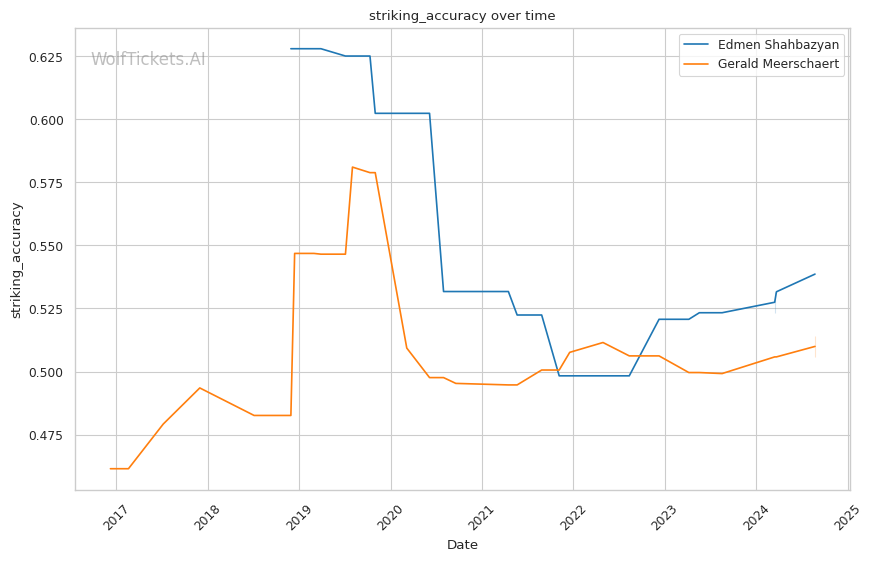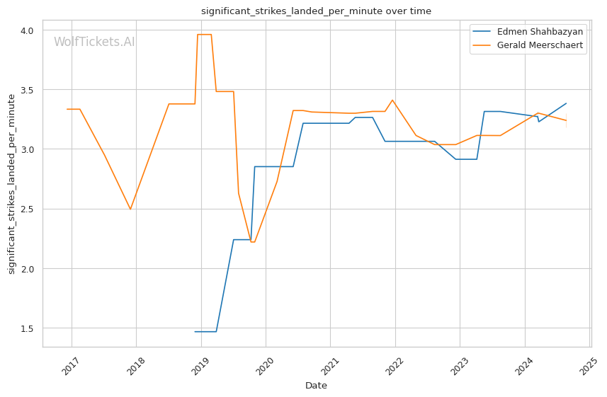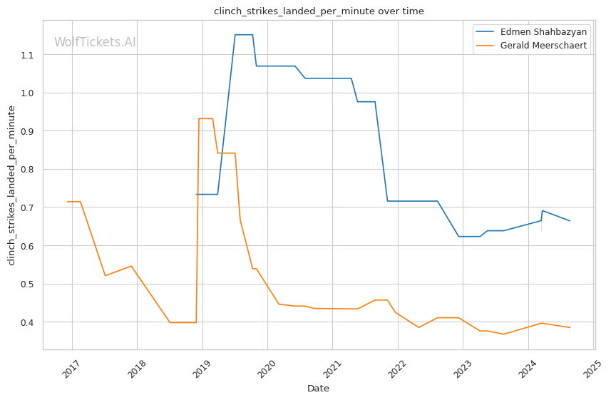 | Stat | Edmen Shahbazyan | Gerald Meerschaert | Weight Class Average | |