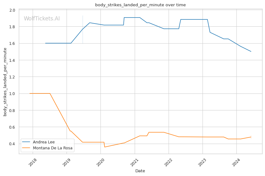 | Stat | Andrea Lee | Montana De La Rosa | Weight Class Average | |