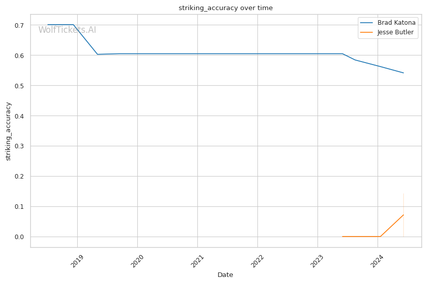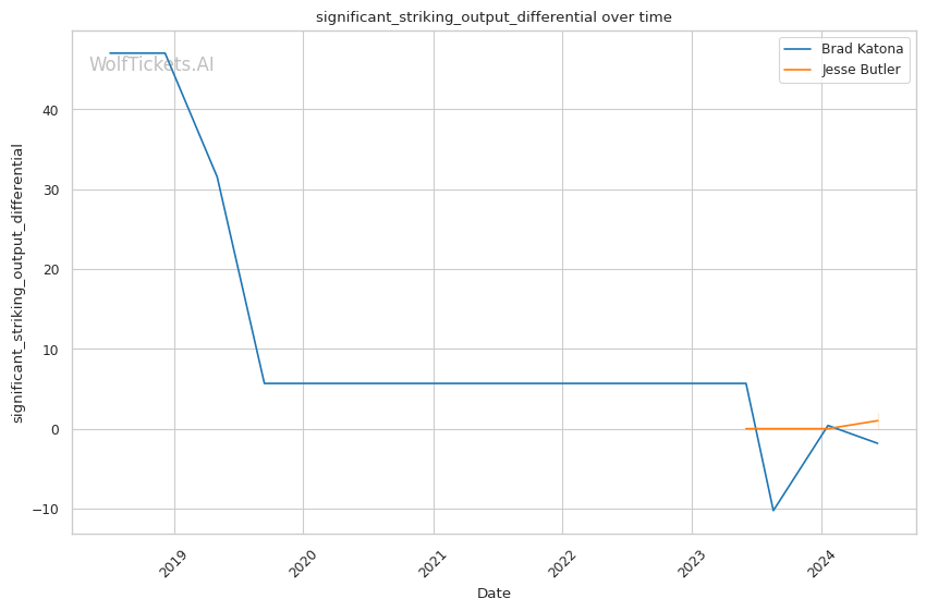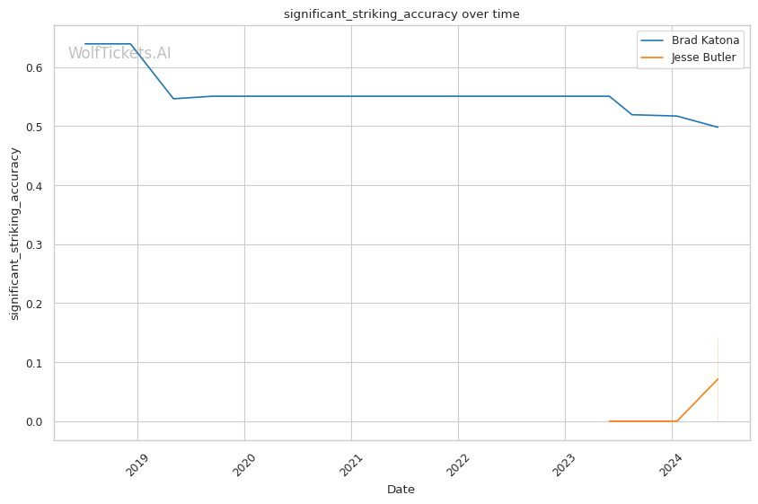 However, the model's recent incorrect prediction for Katona and the lack of past predictions for Butler introduce some uncertainty. Additionally, Butler's significant reach advantage and striking volume could come into play if he can keep the fight standing and outwork Katona over three rounds.
