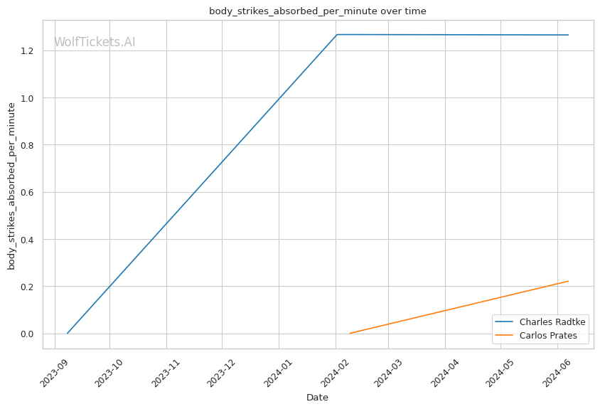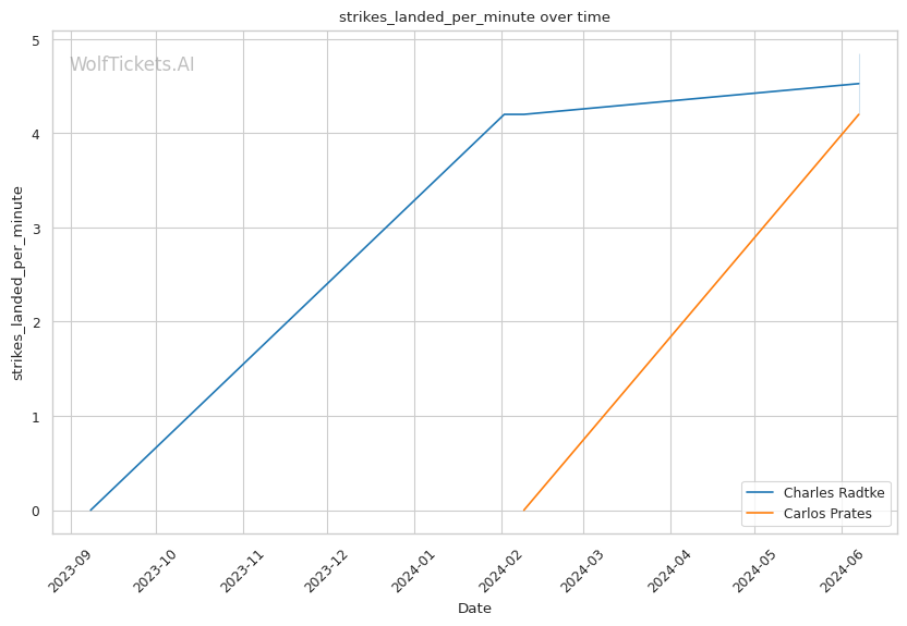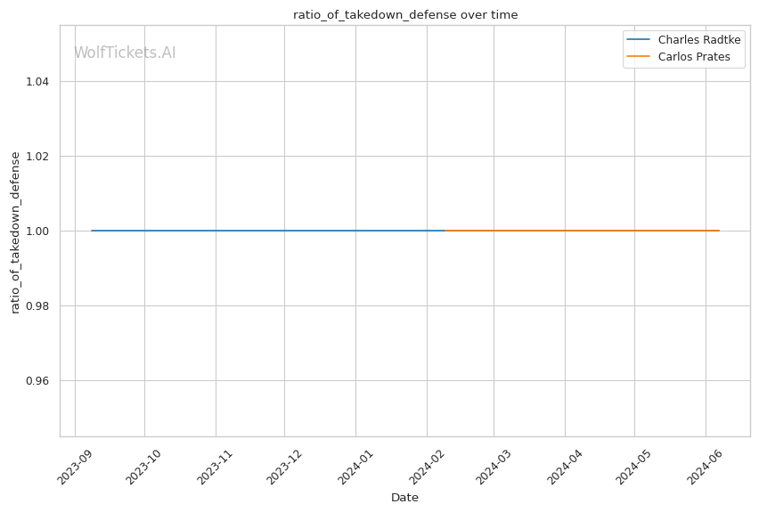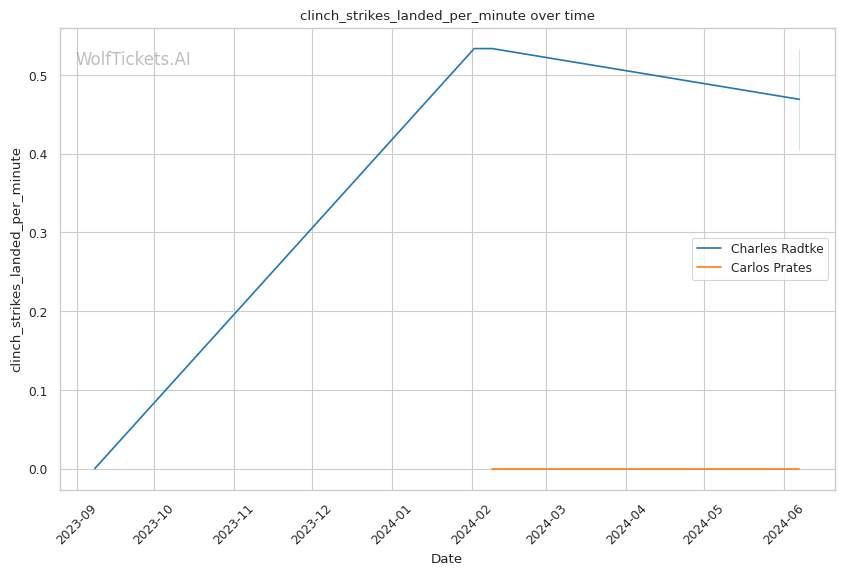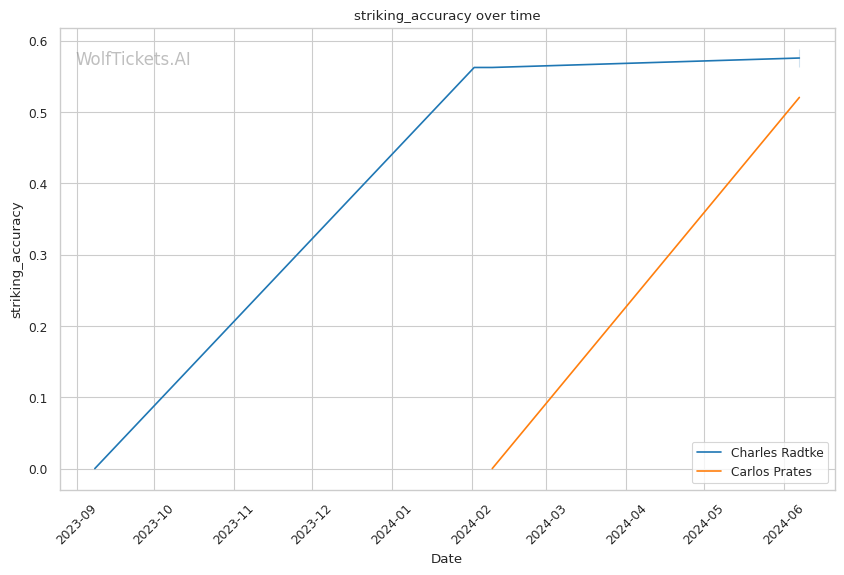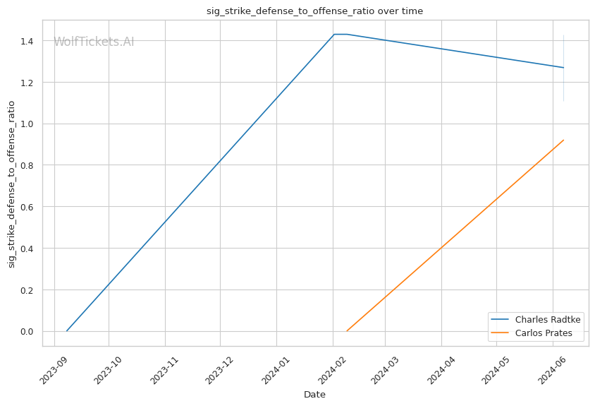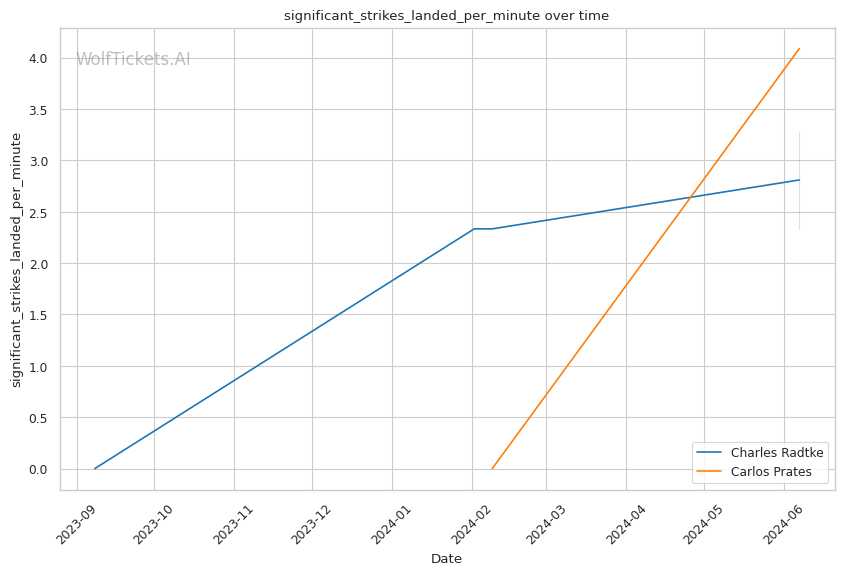Prates' striking defense is a concern, absorbing over 7 significant strikes per minute. Dangerous against a power puncher like Radtke.