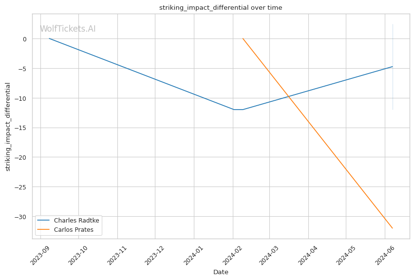 Significant Striking Impact Differential heavily favors Radtke and was the top factor increasing the model's score. Radtke's +2.5 differential far exceeds Prates' -31.