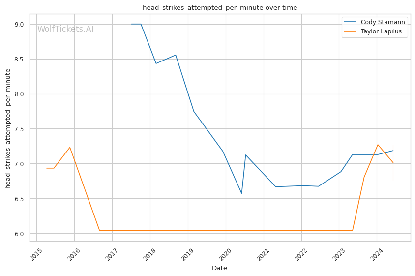 | Head Strikes Attempted per Minute | 7.185 | 6.754 | 6.472 | |