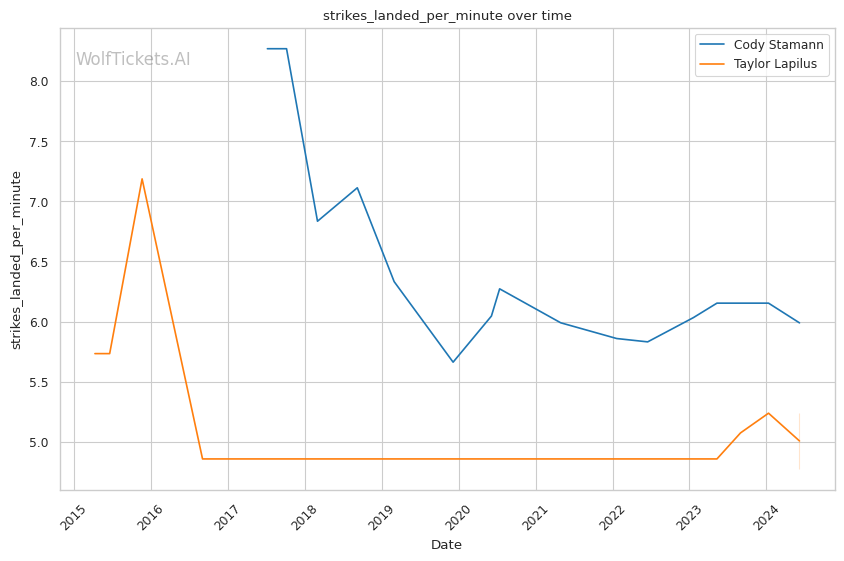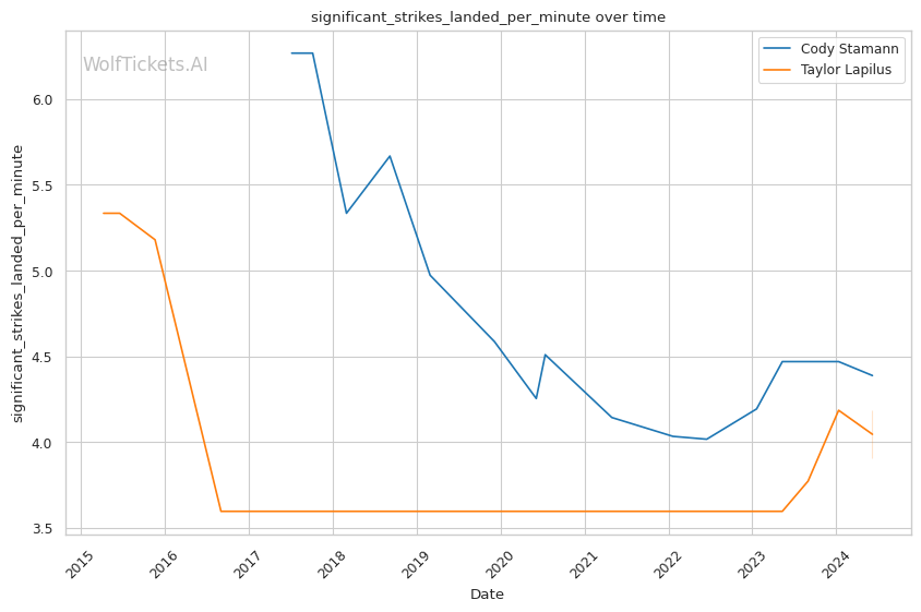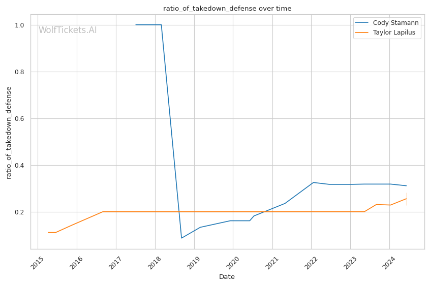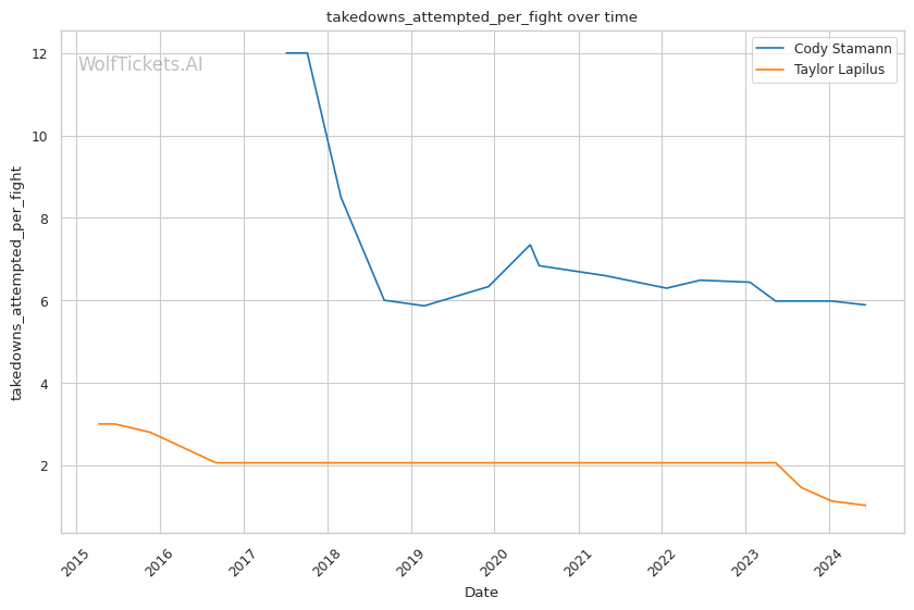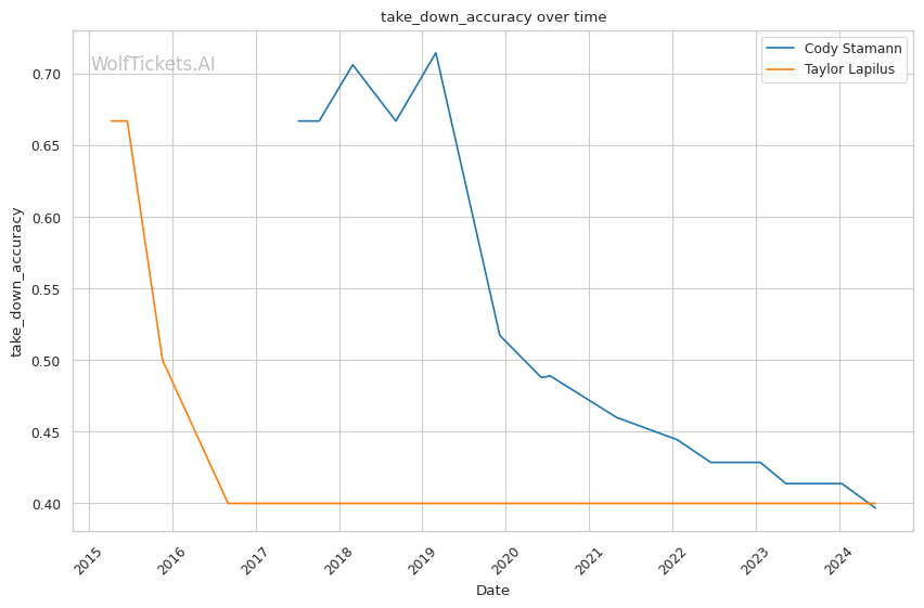 | Stat | Cody Stamann | Taylor Lapilus | Weight Class Average | |