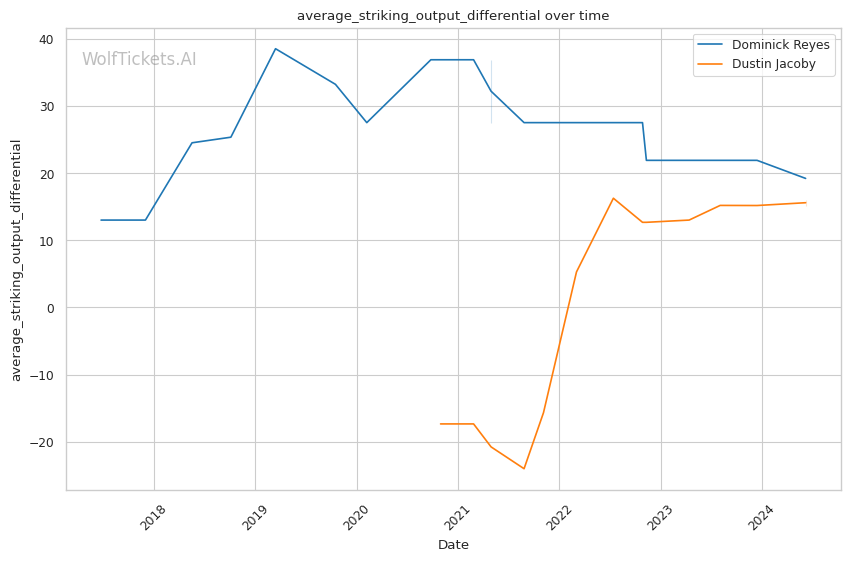 | Stat | Dominick Reyes | Dustin Jacoby | Weight Class Average | |