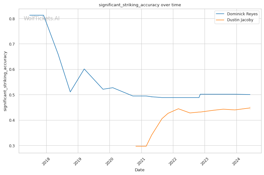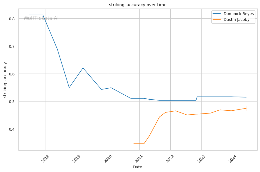 WolfTicketsAI favors Dustin Jacoby to defeat Dominick Reyes, and an in-depth analysis supports this prediction. Jacoby's superior striking metrics, defensive prowess, and recent success give him multiple avenues to victory.