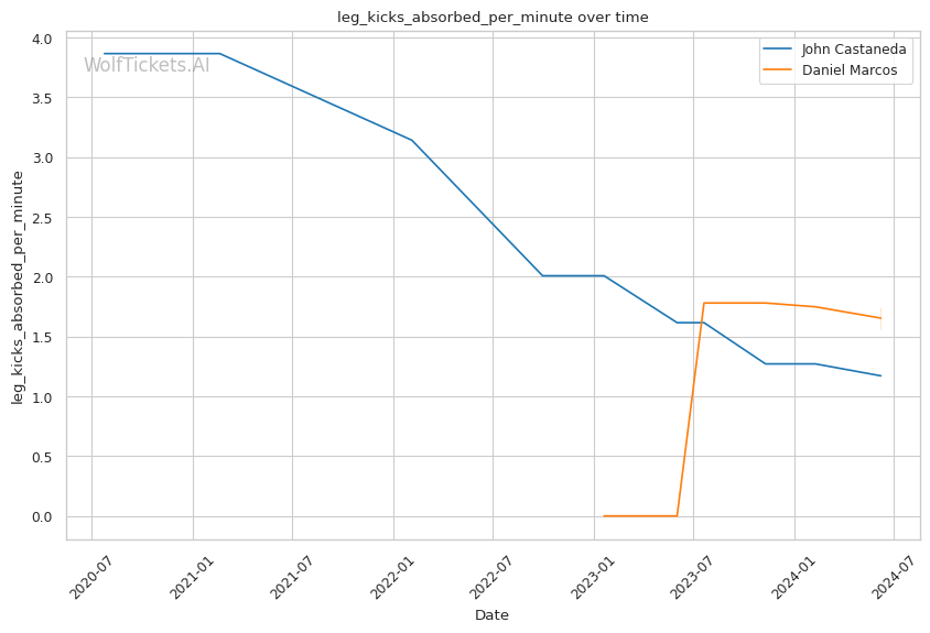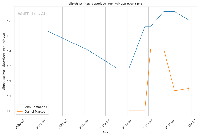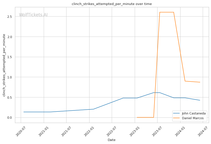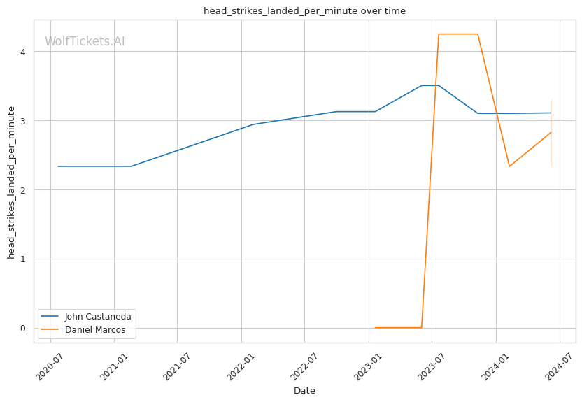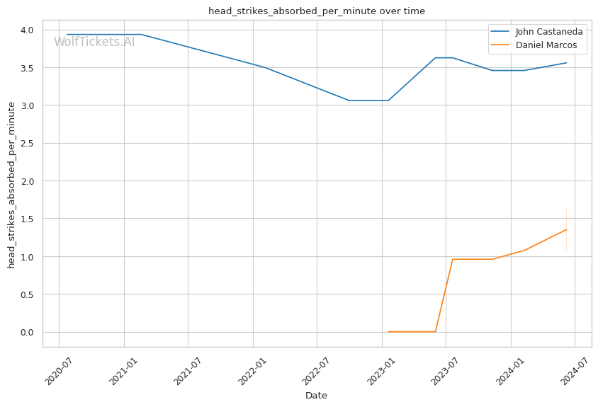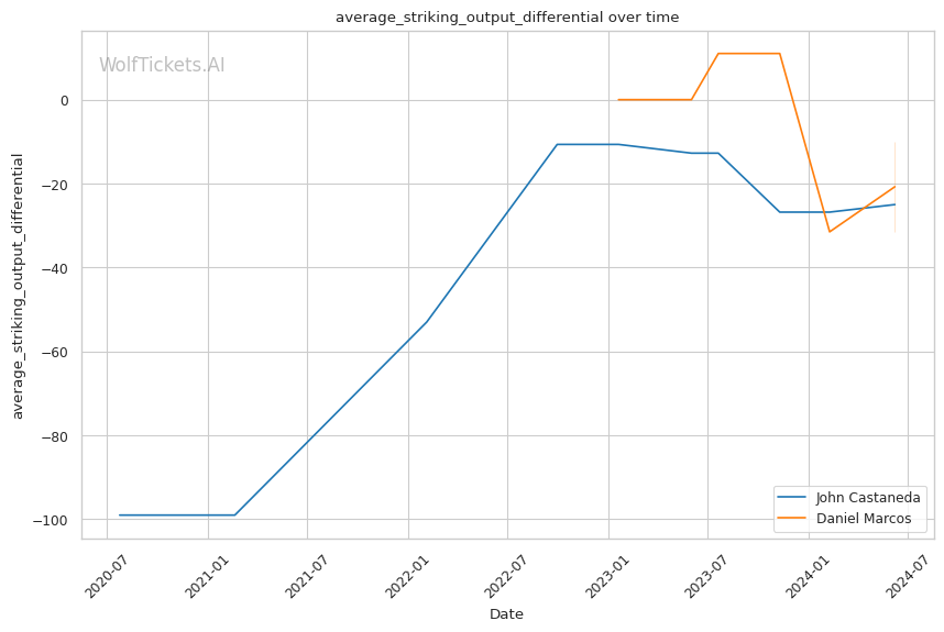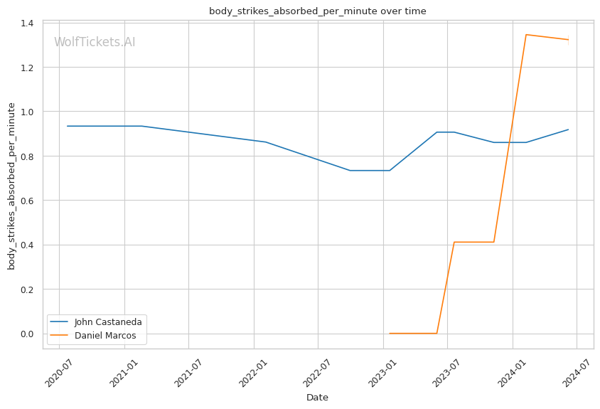 Marcos' striking advantage: Marcos lands more significant strikes than Castaneda and absorbs far fewer, both in total and on a per-minute basis. Striking could be the key to victory for the undefeated prospect.
